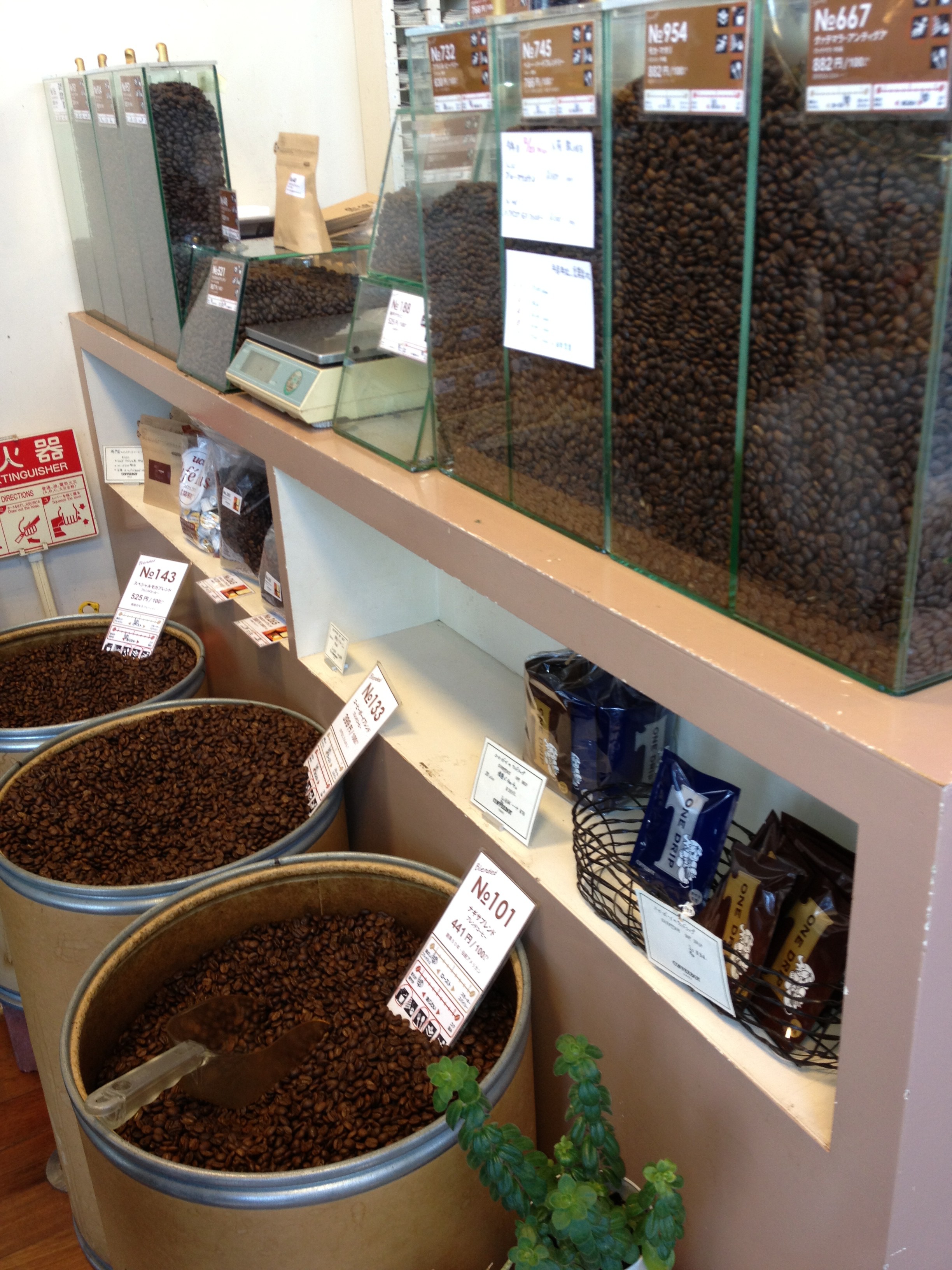 店内に入ると入口近くにたくさんの種類の豆が陳列されていて、